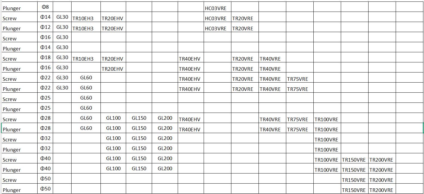Thông số mẫu, bảng kỹ thuật — đường kính xilanh, kích thước plunger, vật liệu, thông số vận hành.